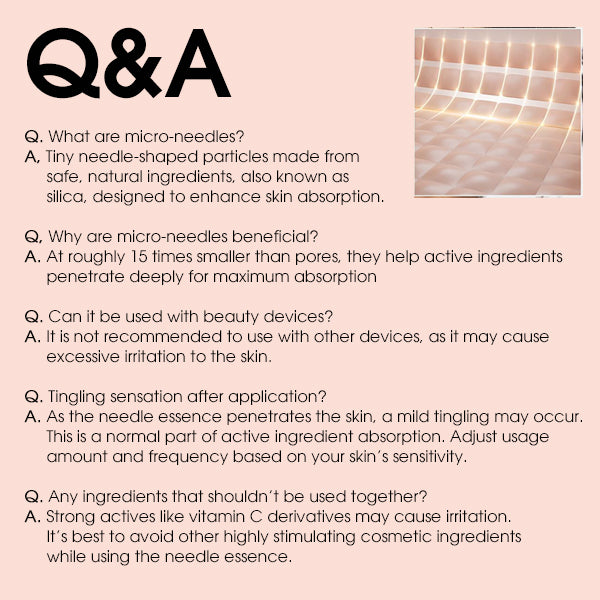 - Micro‑needle‑like essence formulation: ultra‑fine particles allow the potent actives to penetrate deeper than standard pure serums, facilitating more efficient absorption and visible results.