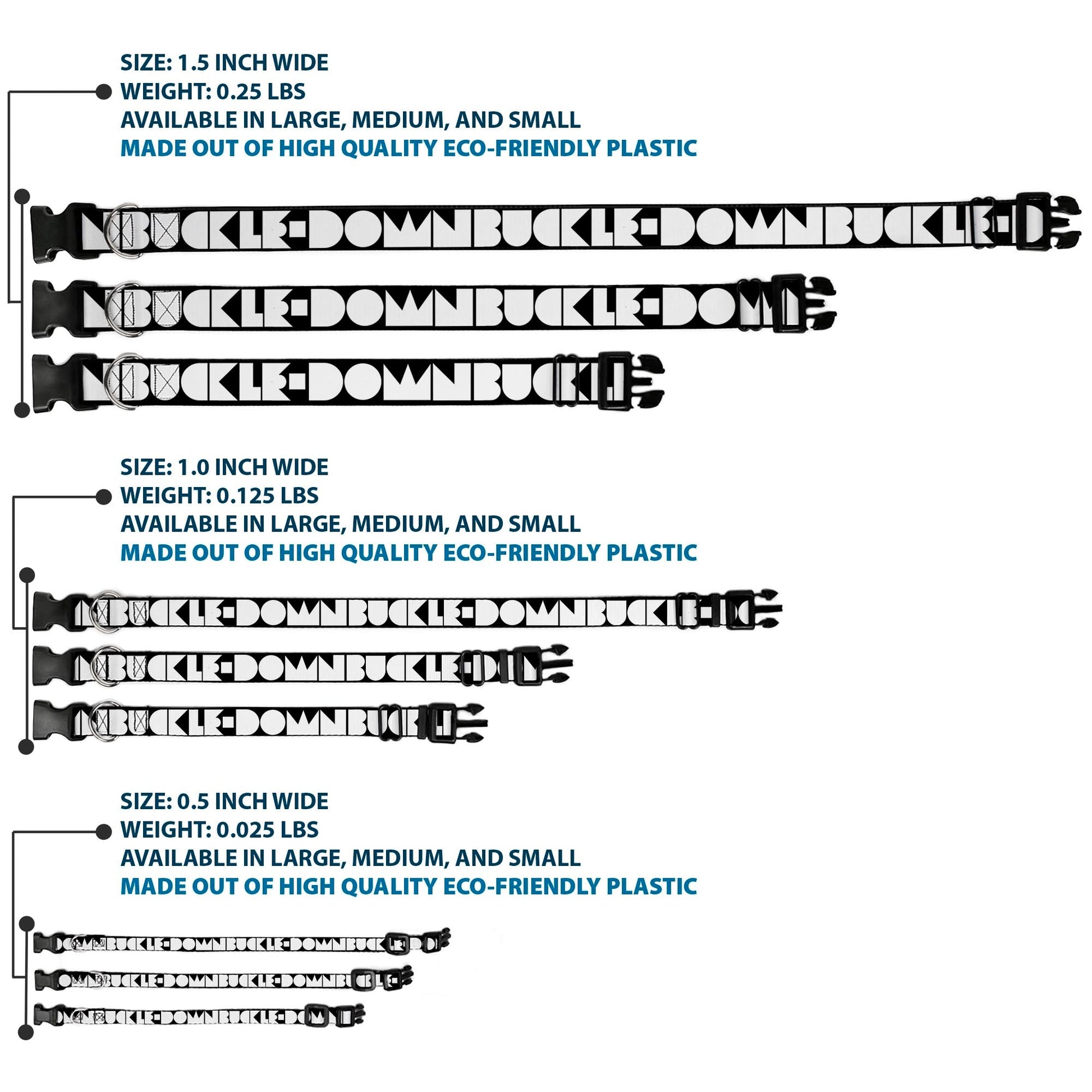 Vibrant and bold, this beautiful, polyester dog collar is made to show off your dog's unique style through all the seasons. With an overengineered plastic buckle and strong D-ring, this durable collar can hold up to whatever your dog can dish out. This product is officially licensed by Buckle-Down.